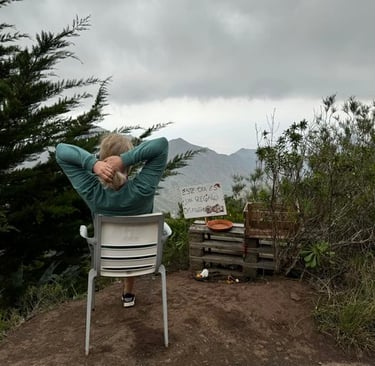 Sunkiai užkilome ant kalno ir pradėjus leistis-šis užrašas su kėde: ”Ši diena yra dovana. Mėgaukis”. Mėgaujamės:) #terapija #Tenerifė #kalnai